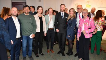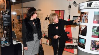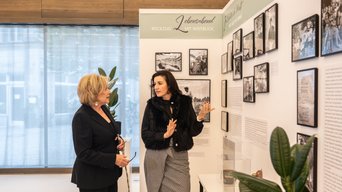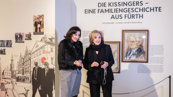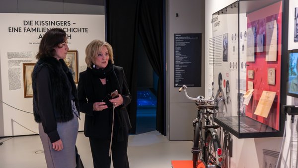 Evi Kurz, Vorstandsvorsitzende der Stiftung Ludwig-Erhard-Haus, führte sie durch die Sonderausstellung “HENRY - World Influencer No. 1. Die Geschichte der Familie Kissinger aus Fürth”, die an den in Fürth geborenen, ehemaligen Außenminister und Friedensnobelpreisträger erinnert.