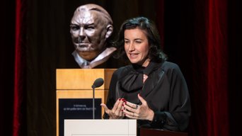 In ihrer Festrede hatte Bundesministerin Dr. Dorothee Bär zuvor für einen „psychologischen Schub a la Ludwig Erhard“ geworben. Nach zwei Jahren Rezession in der Bundesrepublik und einem Europa, das wieder seine Freiheit verteidigen müsse, befinde man sich natürlich in keiner mit mit der Nachkriegszeit vergleichbaren Situation, als Erhard zum Vater des Wirtschaftswunders wurde. Doch wie damals „können wir unser Leben selbst in die Hand nehmen“, so Bär, „wir haben das Zeug dazu, Optimismus zu entfachen.“ Ein Schlüssel dazu sei der Dreiklang Forschung, Wohlstand, Sicherheit. Womit sich dann ein wenig der Kreis zum diesjährigen Träger des Ludwig-Erhard-Kreises schloss. Dass man die Ergebnisse der hierzulande betriebenen Grundlagenforschung stärker monetarisiere, dürfe nicht mit Scham besetzt sein, mahnte die Ministerin. Genau die Förderung dieses Transfergedankens werde im Fokus der Bundesregierung bleiben, versicherte sie.