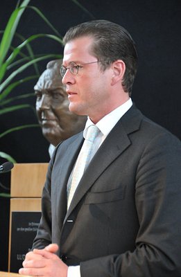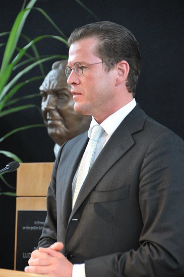 Die 500 Gäste aus Politik, Wirtschaft und Wissenschaft dankten Freiherrn zu Guttenberg für seinen couragierten Auftritt, die ausführlichen und freimütigen Begründungen seiner politischen Entscheidungen, insbesondere aber für sein Versprechen, seine am Wohl der Gesamtheit orientierten Entscheidungen nicht parteipolitischen Erwägungen und wahltaktischen Überlegungen zu opfern.