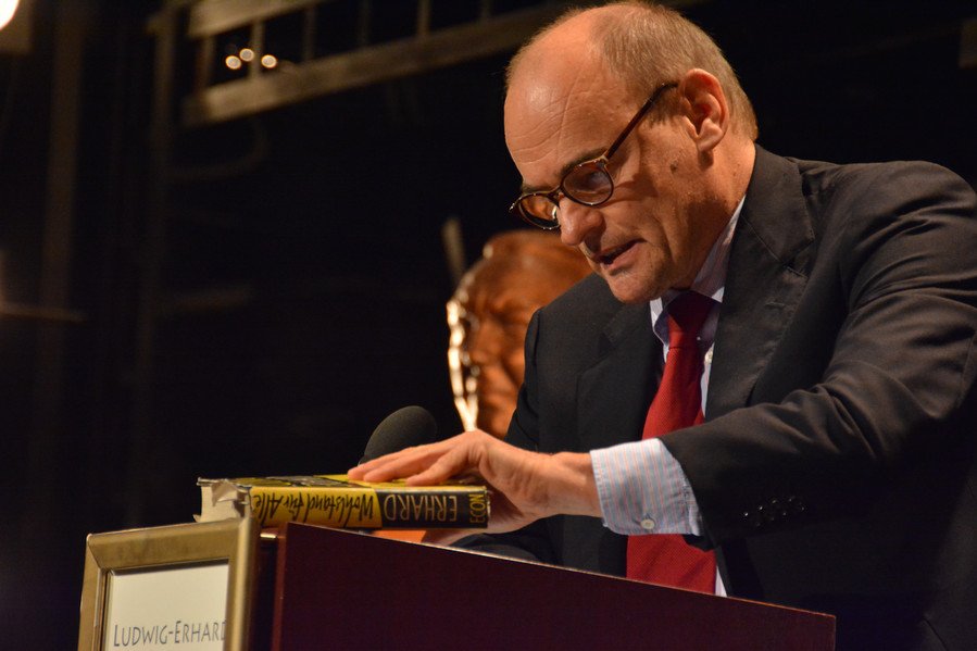 An den großen Mut, mit dem Erhard gegen viele Widerstände 1948 die Währungsreform mit einem radikalen Wechsel von der Plan- zur Marktwirtschaft verband, erinnerte der Historiker Prof. Dr. Daniel Koerfer. Er ist ein Politiker gewesen, der viele Macht- und Intrigenspiele nicht mitspielte, ein „Politiker, der kein Politiker sein wollte“. Die Einführung der Marktwirtschaft durch Erhard „sein ein brutaler Akt“ gewesen, die Menschen hätten damals wenig Geld gehabt, aber einen hohen Bedarf an Gütern. Ihnen sei viel abverlangt worden